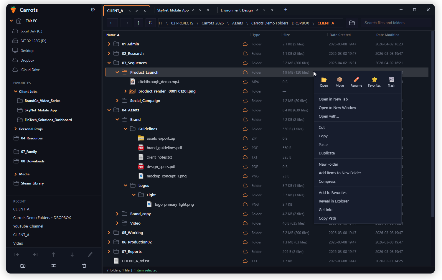 Carrots brings a better way to navigate files on Windows. Your folders stay connected. Your structure is always visible.
